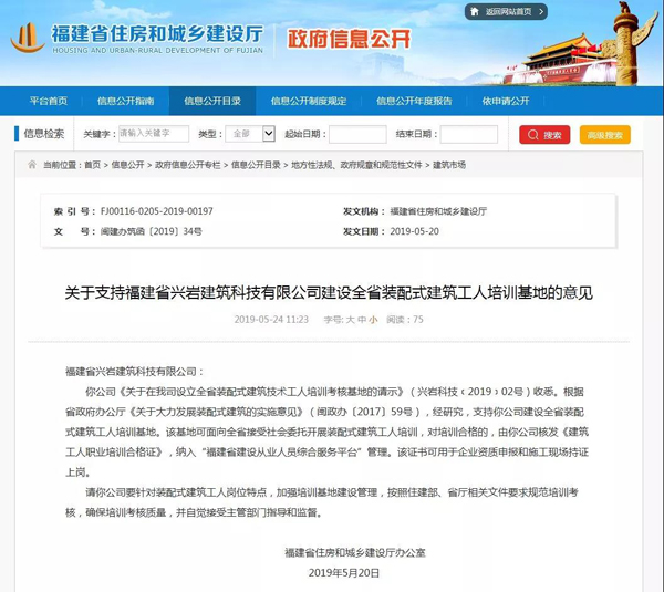 閩建辦筑函原文 關于支持福建省興巖建筑科技有限公司建設全省裝配式建筑工人培訓基地的意見 你公司《關于在我司設立全省裝配式建筑技術工人培訓考核基地的請示》(興巖科技﹝2019﹞02號)收悉。根據省政府辦公廳《關于大力發(fā)展裝配式建筑的實施意見》(閩政辦〔2017〕59號),經研究,支持你公司建設全省裝配式建筑工人培訓基地。該基地可面向全省接受社會委托開展裝配式建筑工人培訓,對培訓合格的,由你公司核發(fā)《建筑工人職業(yè)培訓合格證》,納入“福建省建設從業(yè)人員綜合服務平臺”管理。該證書可用于企業(yè)資質申報和施工現(xiàn)場持證上崗。 請你公司要針對裝配式建筑工人崗位特點,加強培訓基地建設管理,按照住建部、省廳相關文件要求規(guī)范培訓考核,確保培訓考核質量,并自覺接受主管部門指導和監(jiān)督。 福建省住房和城鄉(xiāng)建設廳辦公室 2019年5月20日 喜報!05月20日福建省住房和城鄉(xiāng)建設廳發(fā)布題為“《關于支持福建省興巖建筑科技有限公司建設全省裝配式建筑工人培訓基地的意見》 ”的閩建辦筑函〔2019〕34號。這表示我集團下屬福建省興巖建筑科技有限公司裝配式建筑工人培訓基地,可面向全省接受社會委托,開展裝配式建筑工人培訓,并頒發(fā)有效的專業(yè)培訓合格證書。 為適應建筑產業(yè)現(xiàn)代化發(fā)展趨勢,響應福建省住建廳做好裝配式建筑技術工人培訓工作的指示,興巖科技不斷完善基礎設施,并設立了完善的培訓管理制度。借鑒省內、外的做法經驗,采用“理論+實操+考核”相結合的培訓方式,使參訓人員對裝配式建筑的理論體系有系統(tǒng)了解的同時,更加直觀的學習裝配整體式建筑從設計到施工及管理全過程,以確保學員最終能夠真正掌握裝配式建筑工種職業(yè)技能。 后續(xù)興巖科技擬在現(xiàn)有培訓基地的基礎上,還將進一步與高校合作成立“興巖建筑科技產業(yè)學院”。 裝配式建筑發(fā)展既要高質量發(fā)展、綠色發(fā)展,也要安全發(fā)展,建設完成后興巖科技培訓基地將不僅僅面向本企業(yè)和合作企業(yè)的裝配式建筑產業(yè)工人,在承接好漳州市裝配式建筑技術工人培訓的同時,也將努力為全省建筑業(yè)轉型升級和建筑產業(yè)化發(fā)展做出應有貢獻。