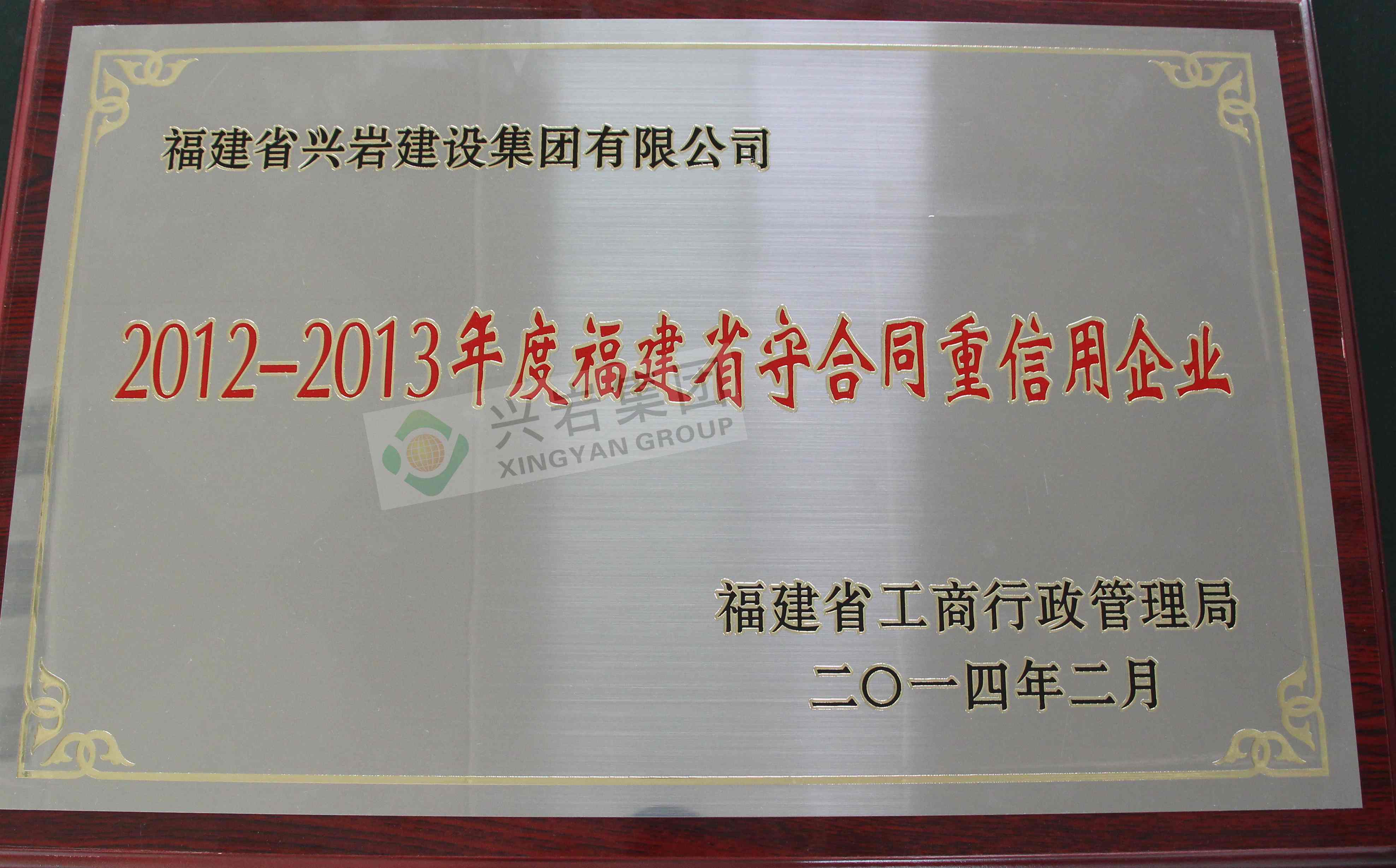 熱烈祝賀我公司獲得2012-2013年度福建省守合同重信用企業(yè)稱號。