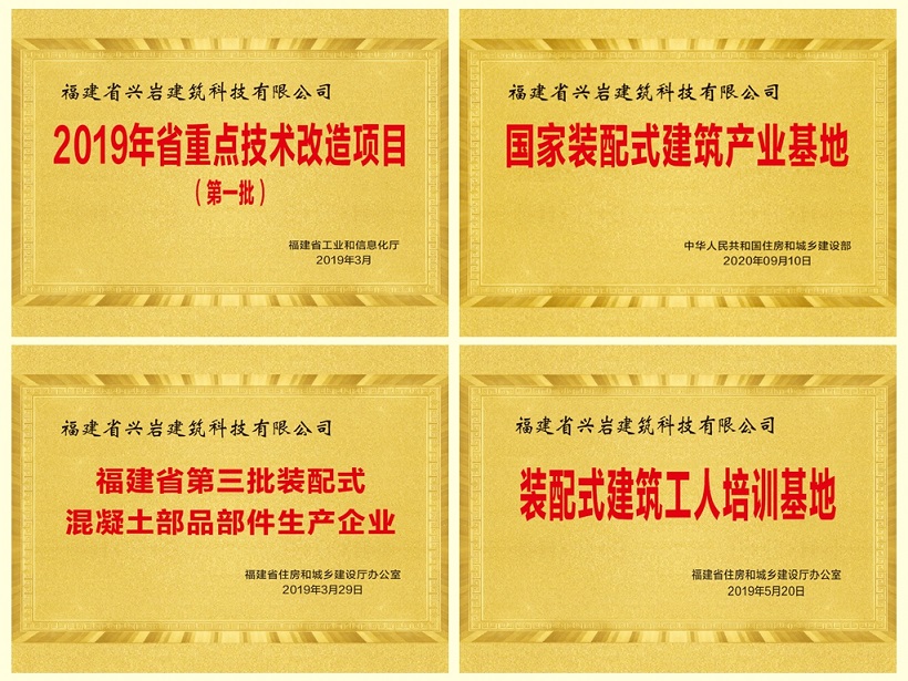 公司截止到目前已獲得“第二批國家裝配式建筑產(chǎn)業(yè)基地”、“福建省第三批裝配式混凝土部品部件生產(chǎn)基地”、“福建省裝配式建筑工人培訓基地”、“2019年福建省第一批重點技術(shù)改造項目”等多項裝配式相關(guān)的技術(shù)專利。