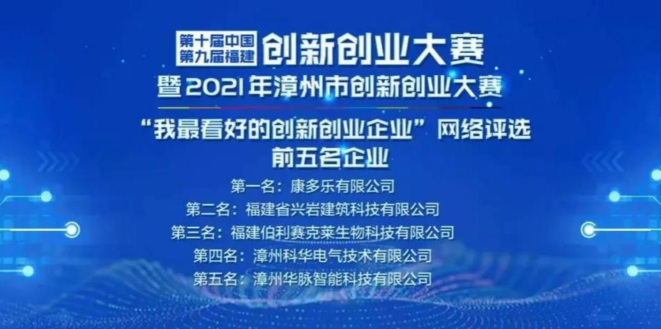 今年比賽首次增設了“我最看好的創(chuàng)新創(chuàng)業(yè)企業(yè)”網絡選票。從進入決賽的21家企業(yè)中產生,經過6天的點贊助力,最終5家企業(yè)脫穎而出,長泰區(qū)企業(yè)康多樂有限公司 、福建省興巖建筑科技有限公司榮獲2021年漳州市創(chuàng)新創(chuàng)業(yè)大賽網絡評選“我最看好的創(chuàng)新創(chuàng)業(yè)企業(yè)”。