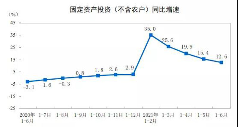 1-6月份,全國固定資產(chǎn)投資(不含農(nóng)戶)255900億元,同比增長12.6%;比2019年1-6月份增長9.1%,兩年平均增長4.4%。其中,民間固定資產(chǎn)投資147957億元,同比增長15.4%。從環(huán)比看,6月份固定資產(chǎn)投資(不含農(nóng)戶)增長0.35%。