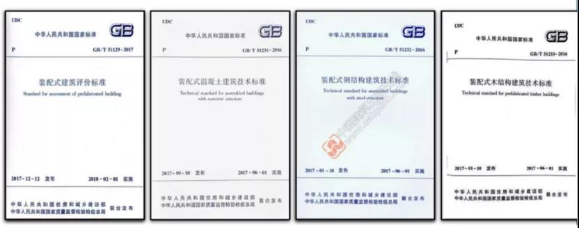 在國家引導和大力扶持下,裝配式建筑正朝著規(guī)范化方向穩(wěn)步發(fā)展,現行標準不斷完善。目前,我國在裝配式建筑領域遵循的國家標準主要有一本評價標準、三本技術標準。
