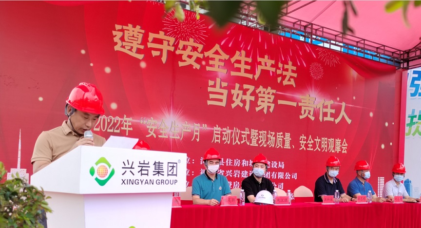 2022年6月21日,漳浦縣住房和城鄉(xiāng)建設局在漳浦建發(fā)•鹿溪映月項目隆重舉行2022年“安全生產月”啟動儀式暨現(xiàn)場觀摩會。觀摩會緊緊圍繞“遵守安全生產法,當好第一責任人“主題,觀摩會由漳浦縣住房和城鄉(xiāng)建設局主辦、福建省興巖建設集團有限公司承辦。漳浦縣政府副縣長洪和庭參加觀摩并做重要講話。