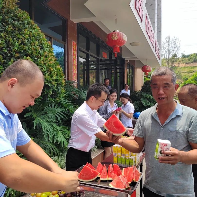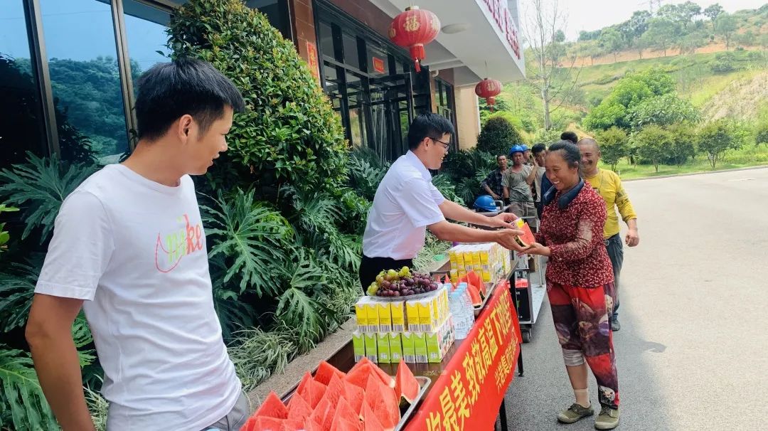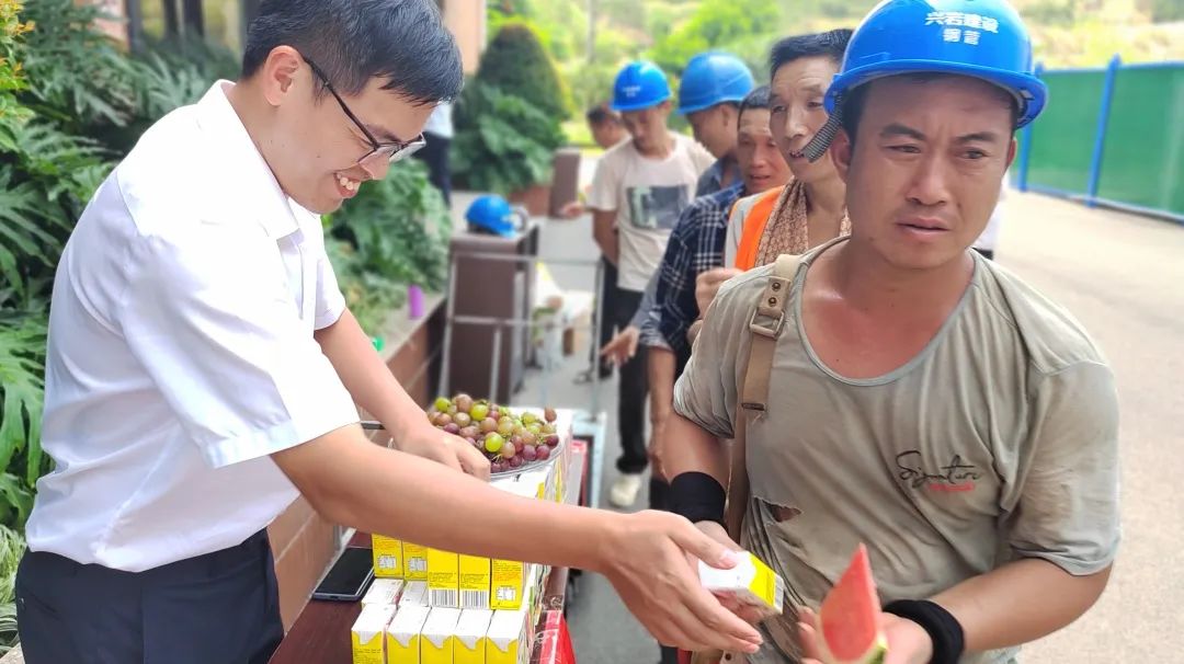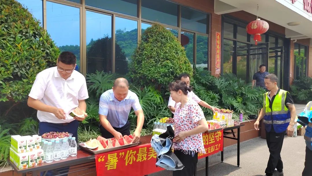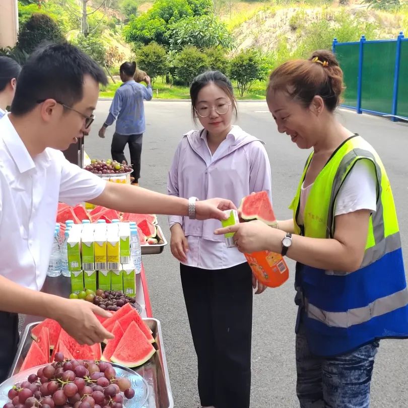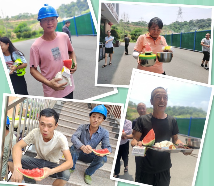 認真做好防暑降溫工作,切實保障高溫下一線職工的職業(yè)安全與健康權益,科技廠副總經(jīng)理陳海彬、廠長林江鵬、副廠長胡智強,科研樓副總工曾華溢、項目經(jīng)理葉阿聰。平日里不茍言笑的主管,平日里正言厲色的領導,今日收起了領導光環(huán),為自己的員工精心準備了冰鎮(zhèn)西瓜及涼茶。早早的在餐廳門口等候,等待辛苦的砼人們在用完餐的第一時間為他們親手遞上清涼與問候。促進了上下級關系的和諧,體現(xiàn)公司“家”文化的企業(yè)理念,進一步形成良好的企業(yè)向心力和凝聚力。