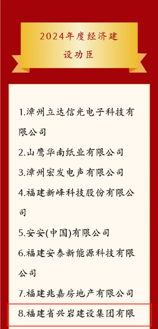 春風(fēng)送暖傳佳訊,捷報頻來賀歲新!2025 年 2 月 7 日,中共漳州市長泰區(qū)委、漳州市長泰區(qū)人民政府發(fā)布《關(guān)于表揚(yáng) 2024 年度納稅大戶的決定》,興巖集團(tuán)因 2024 年納稅額 1000 萬元以上,榮獲漳州市長泰區(qū) 2024 年度“經(jīng)濟(jì)建設(shè)功臣獎”榮譽(yù)。在此之前,興巖集團(tuán)已多次獲此殊榮,感謝長泰區(qū)委、區(qū)政府對興巖的表彰與認(rèn)可,興巖集團(tuán)也將會保持初心,繼續(xù)前行,同時也感謝每一位集團(tuán)成員的付出和努力,這份榮譽(yù)將讓我們繼續(xù)保持熱情和動力,繼續(xù)加油!