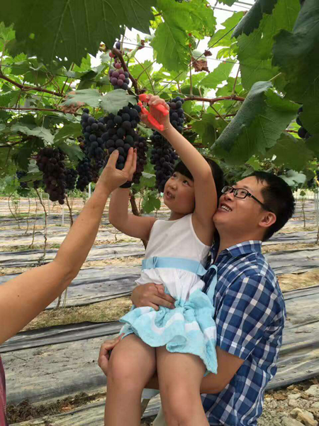 一走進(jìn)采摘區(qū),大伙便按捺不住激動的心情,直奔目標(biāo)而去,在葡萄架下穿梭,散發(fā)著陣陣清甜香味的葡萄發(fā)出了難以抵擋的誘惑,大家紛紛拿起手中的剪刀摘下了一串串烏黑、成熟的葡萄,不時摘下一兩顆細(xì)細(xì)品嘗。在葡萄架下大家熱情高漲,歡聲笑語,共同分享收獲的喜悅和甘甜,一片歡樂和諧的景象。近一個小時的挑選、品嘗、采摘之后,每位同事都拎著沉甸甸的葡萄,洋溢著滿足的笑臉。