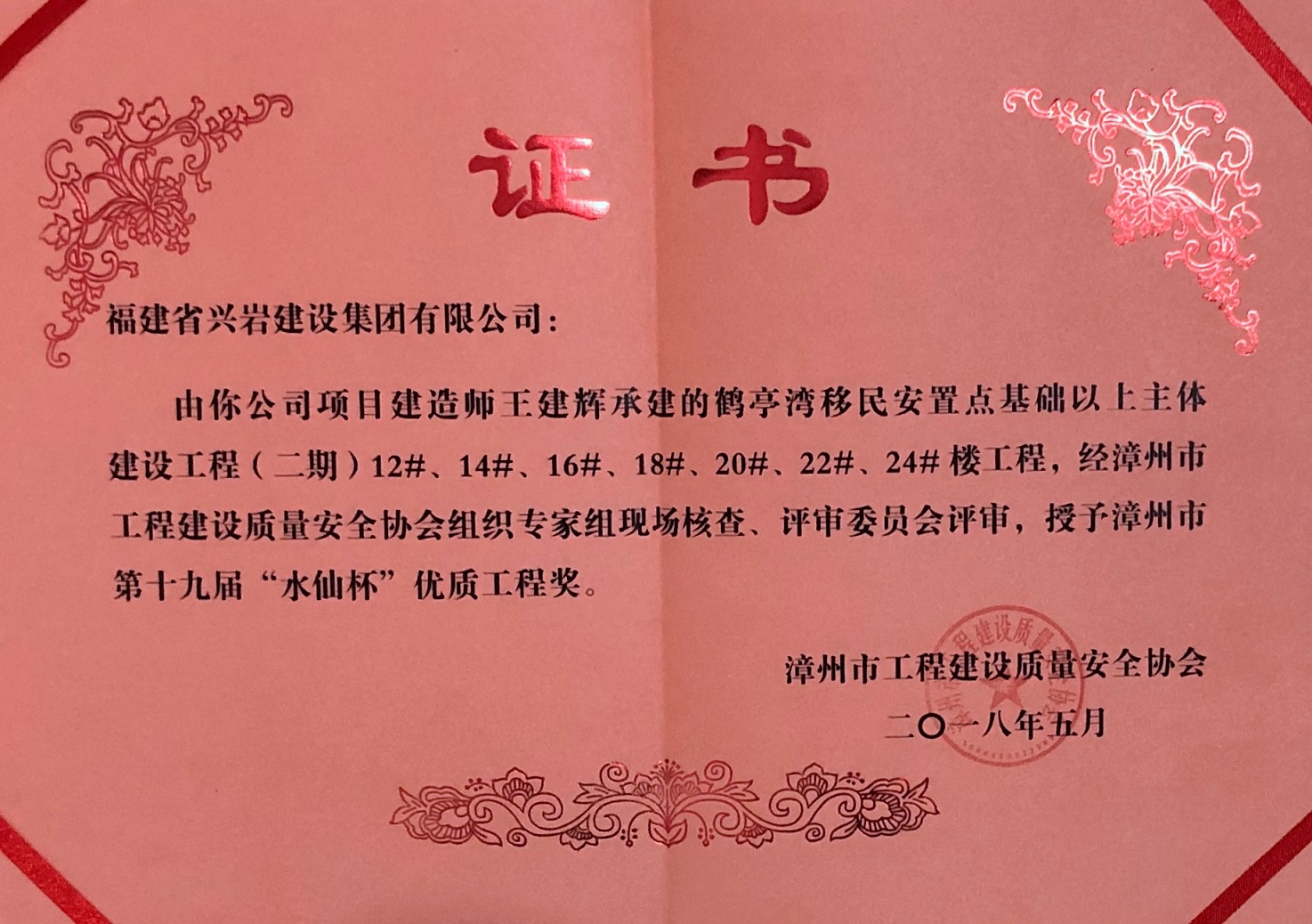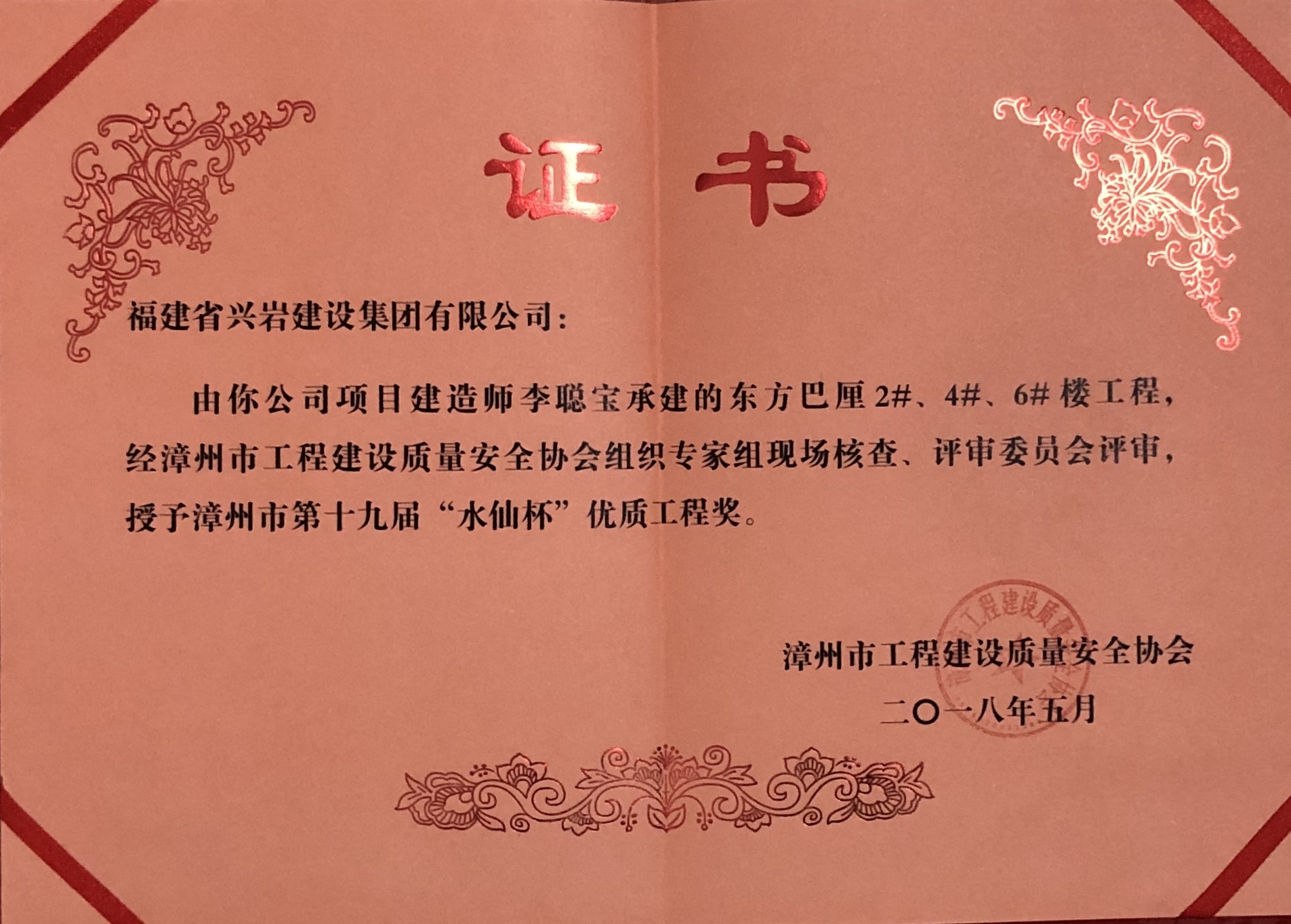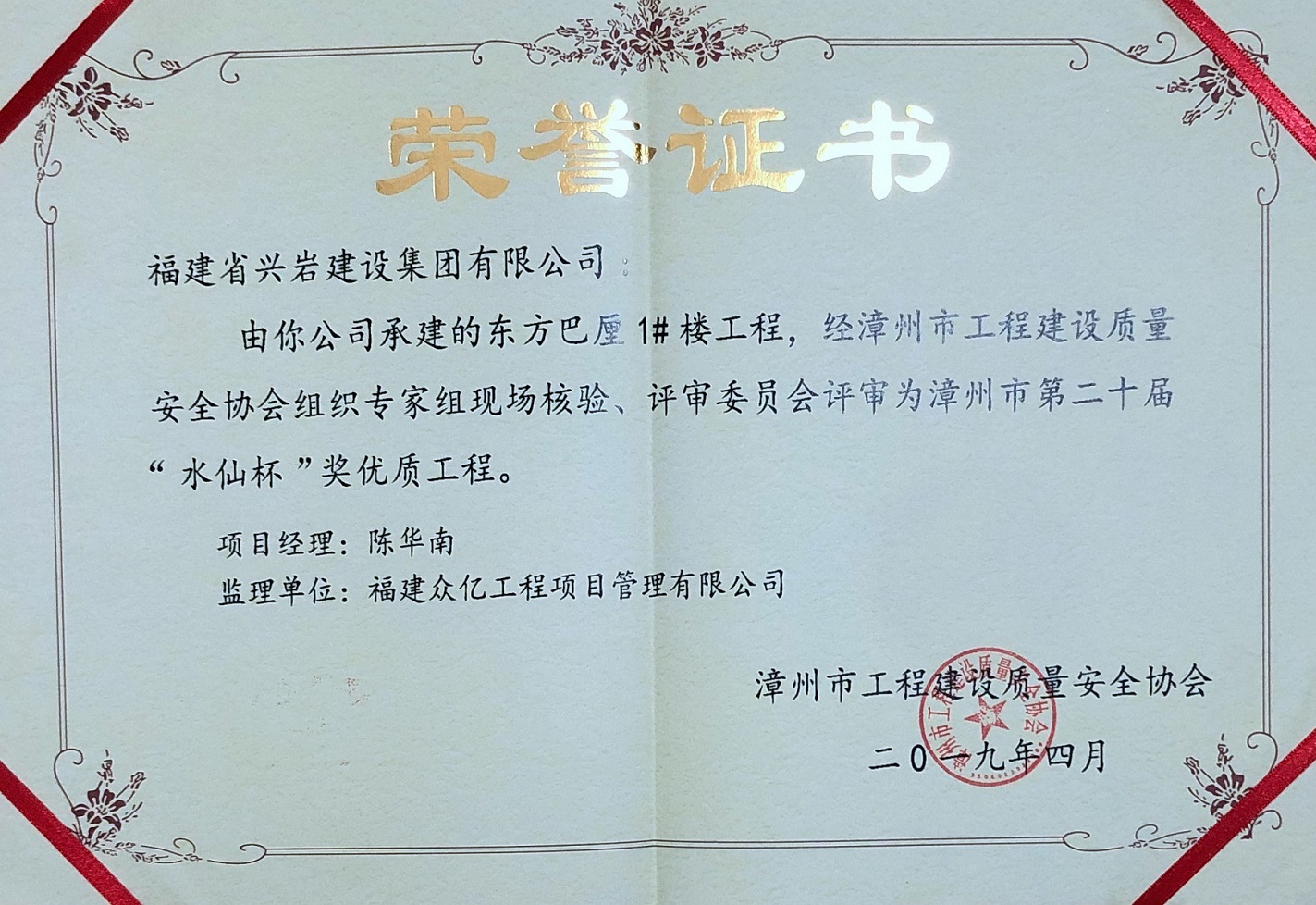 “十九屆”水仙杯優(yōu)質(zhì)工程獎(jiǎng)