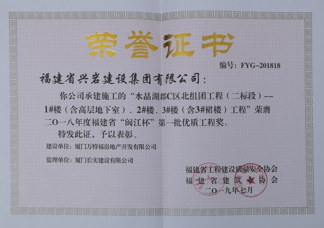 閩江杯第一批優(yōu)質(zhì)工程獎(jiǎng)